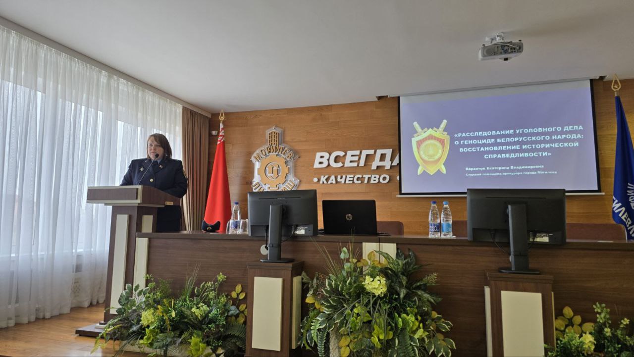 Накануне этой скорбной даты на "Могилевлифтмаш" состоялась встреча с участием старшего помощника прокурора г. Могилева Екатерины Варанчук, которая выступила с докладом о Хатынской трагедии и о ходе расследования уголовного дела по факту геноцида белорусского народа.