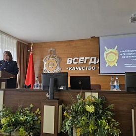 Екатерина Владимировна проинформировала коллектив о ходе расследования уголовного дела по факту массового уничтожения мирного населения в Казимировском лесу. Спикер привела примеры жестокости оккупантов и их пособников на Могилевской земле.