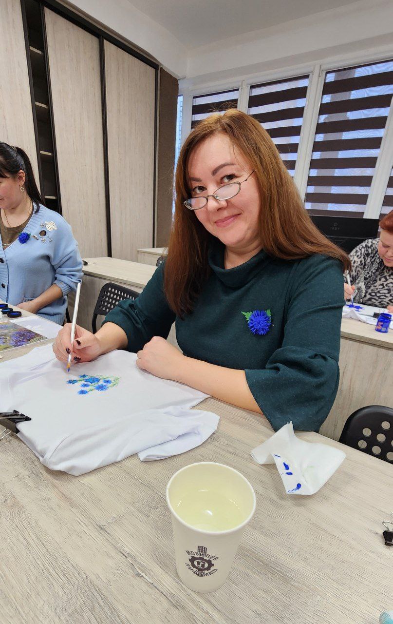 Мастер-класс стал для меня настоящим подарком! Горжусь тем, что смогла создать себе уникальную вещь» — поделилась Наталья Федоровна, диспетчер цеха металлоконструкций. «Я с гордостью буду носить свою майку, которая будет напоминать всем окружающим о нашей неповторимой культуре.