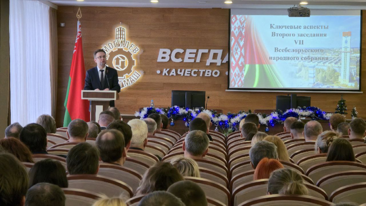 В ОАО "Могилевлифтмаш" состоялась важная информационная встреча с трудовым коллективом и молодежью Общества, которую провёл Руслан Борисович Страхар, член Президиума Второго заседания VII Всебелорусского народного собрания, генеральный директор предприятия.