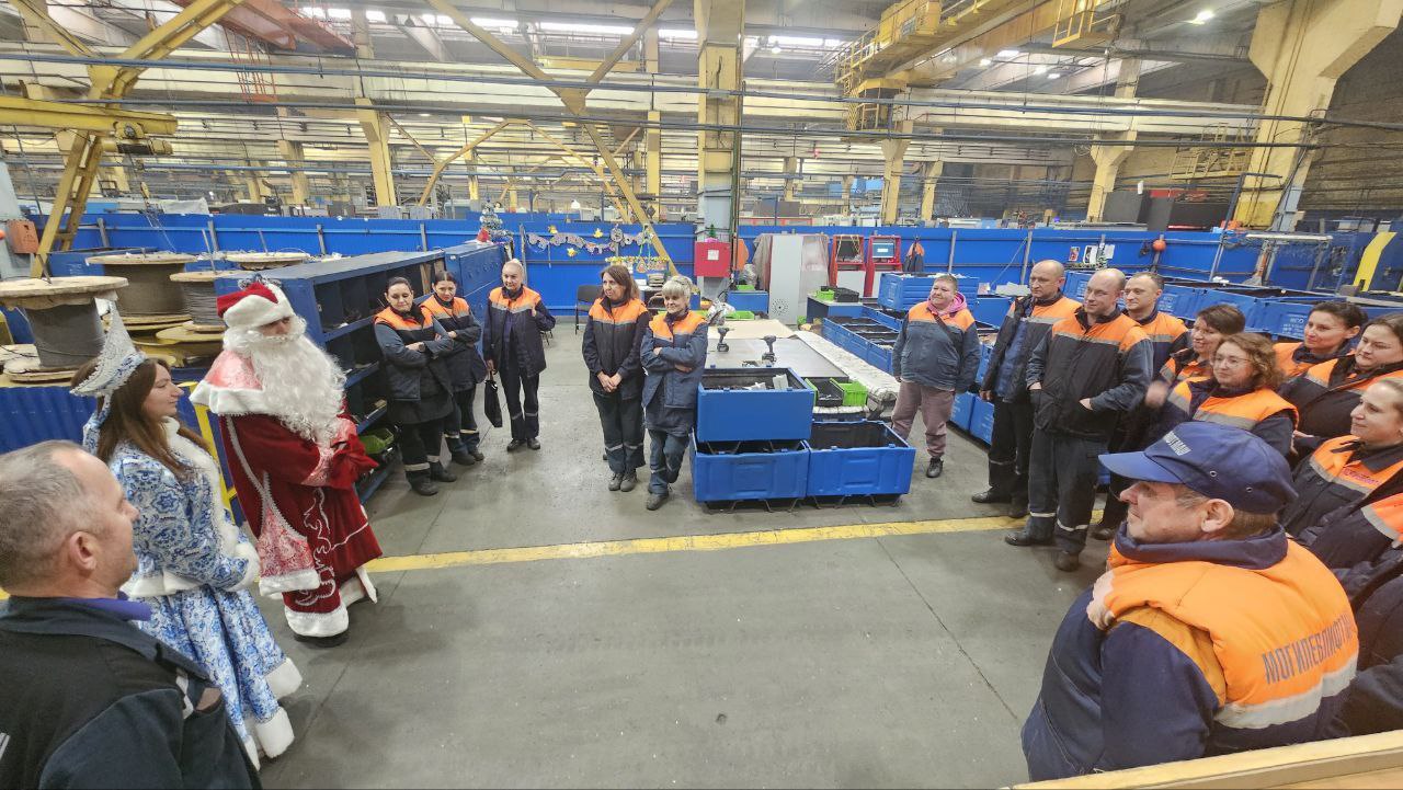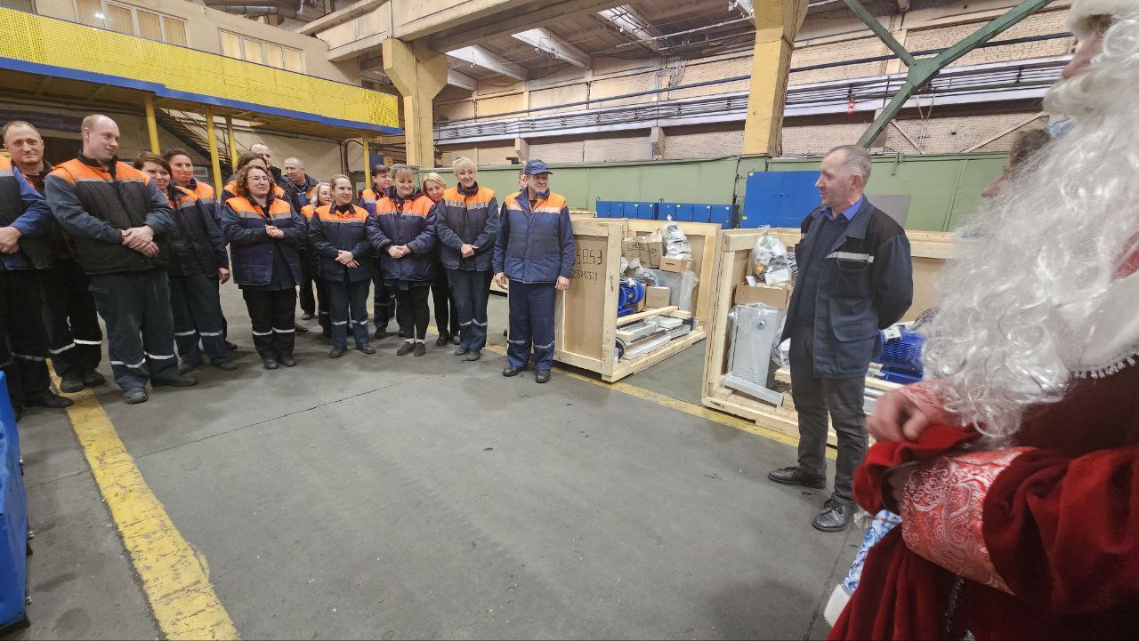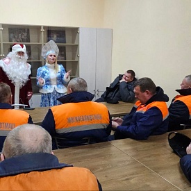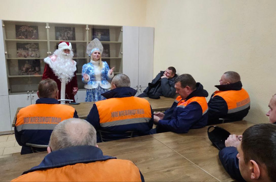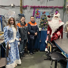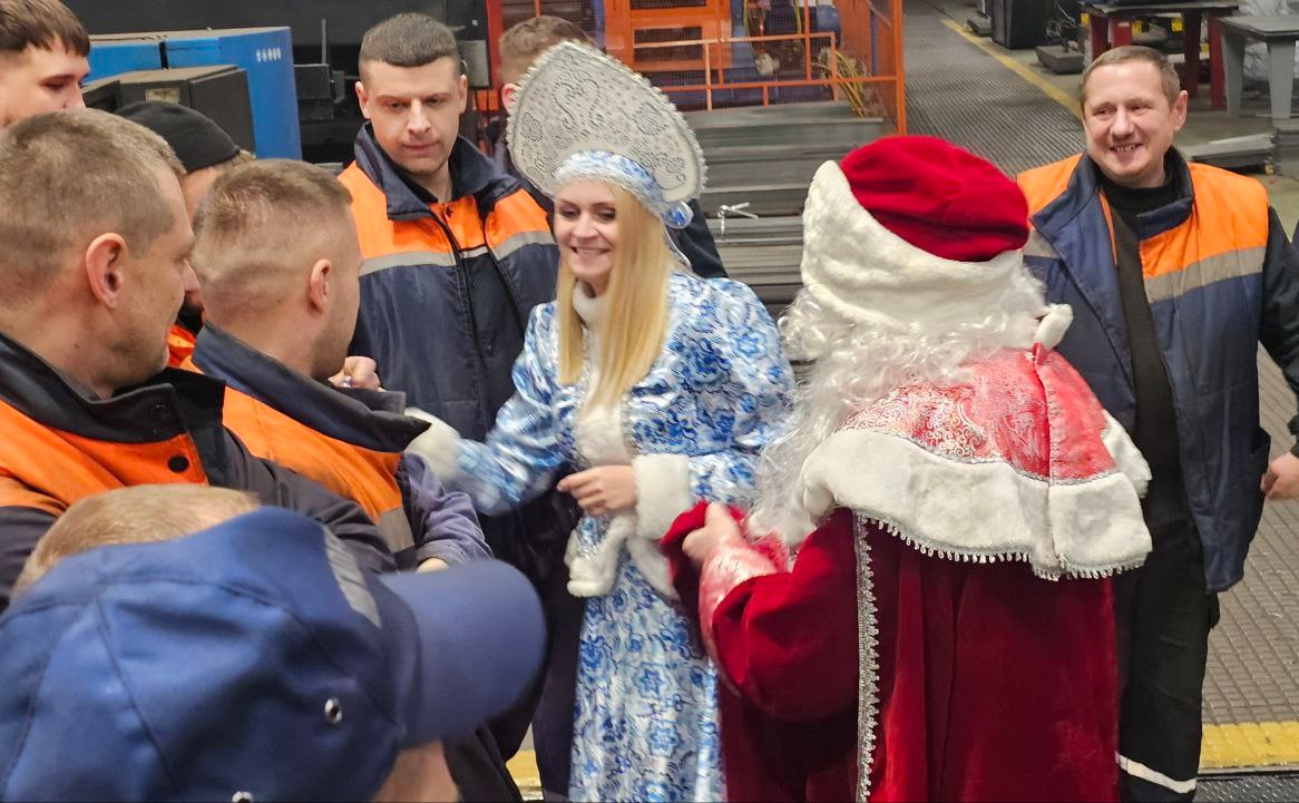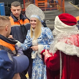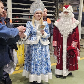 Дедушка Мороз и Снегурочка лично поздравили лифтостроителей с наступающими праздниками — добрыми словами и праздничным настроением.