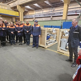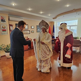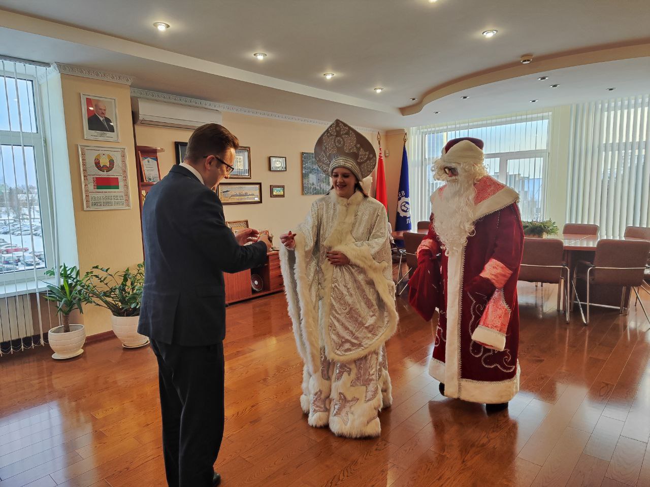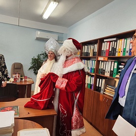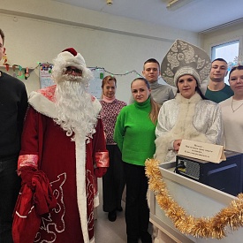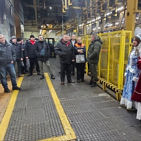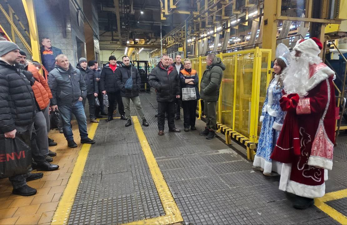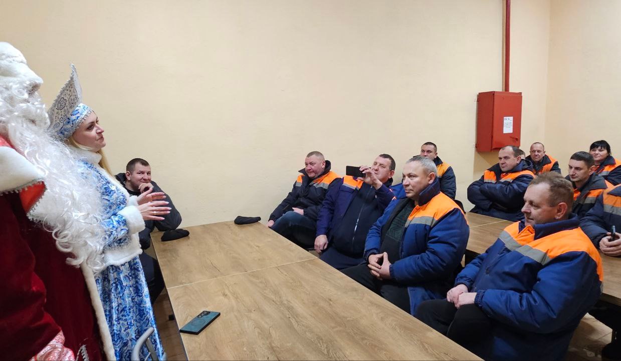 Дедушка Мороз и Снегурочка лично поздравили лифтостроителей с наступающими праздниками — добрыми словами и праздничным настроением.