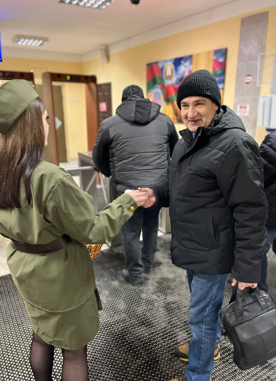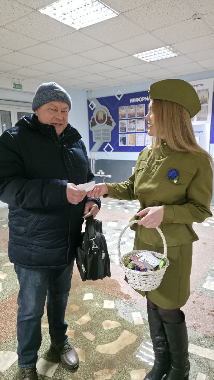с Днем защитника Отечества и Вооруженных Сил Республики Беларусь и «сладкие комплименты» от активисток первички "Белорусского союза женщин".