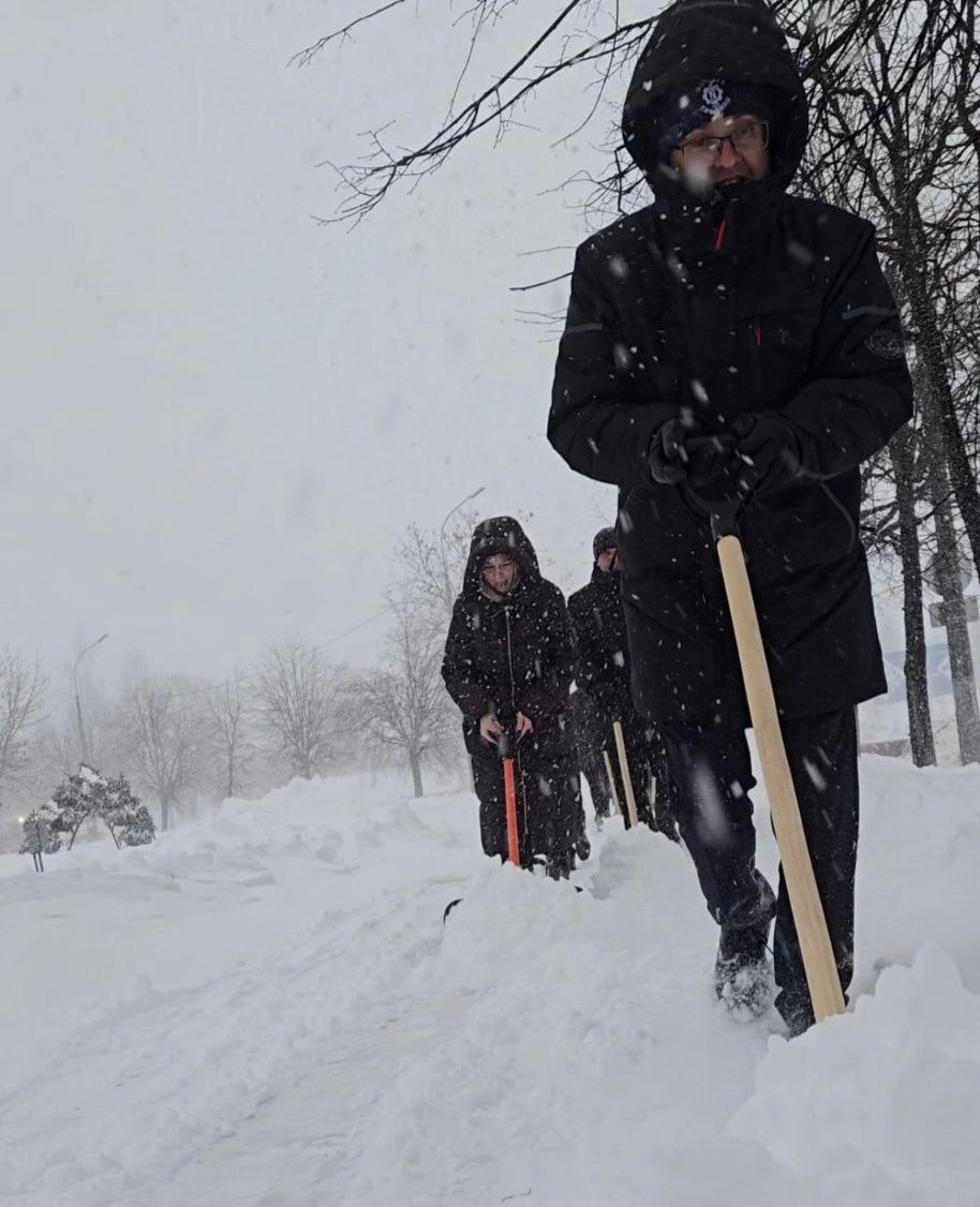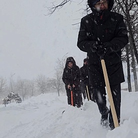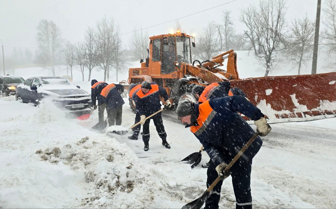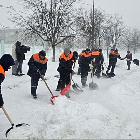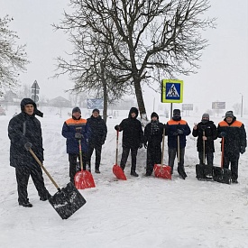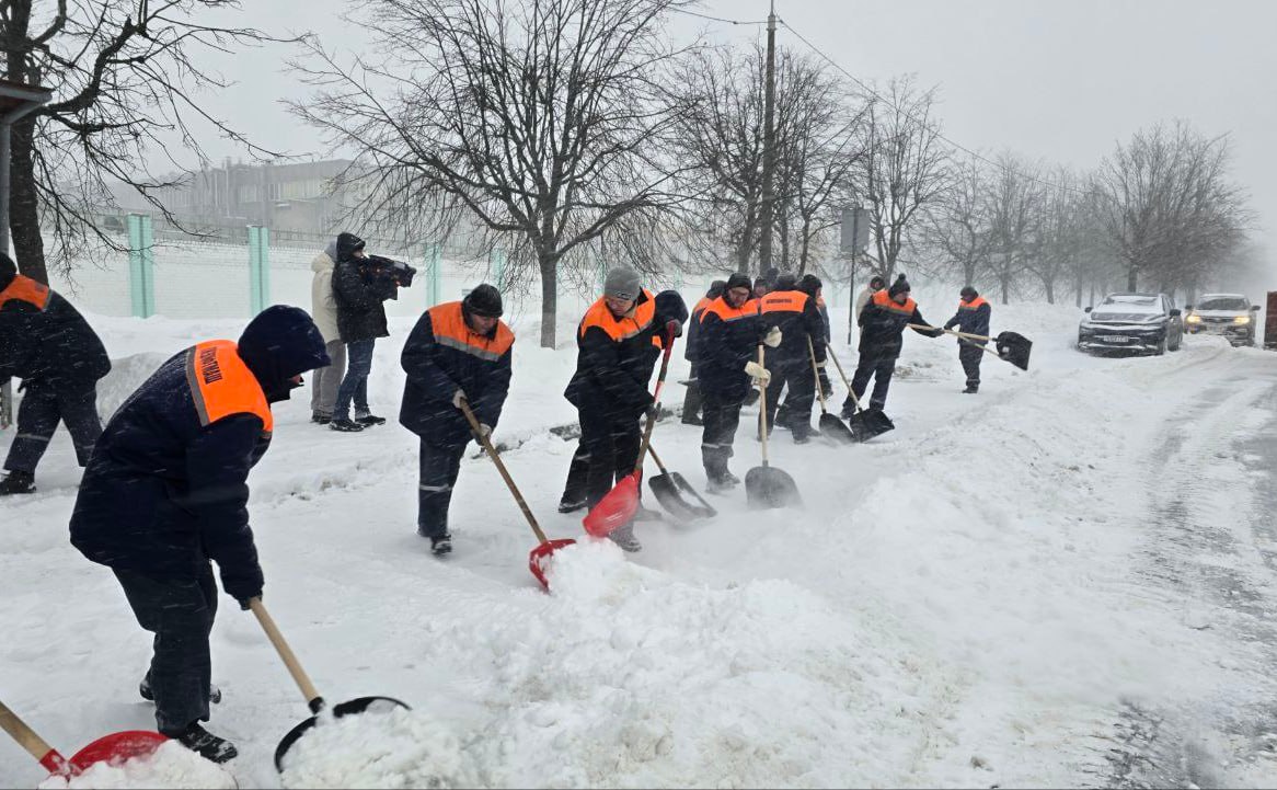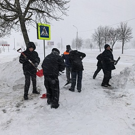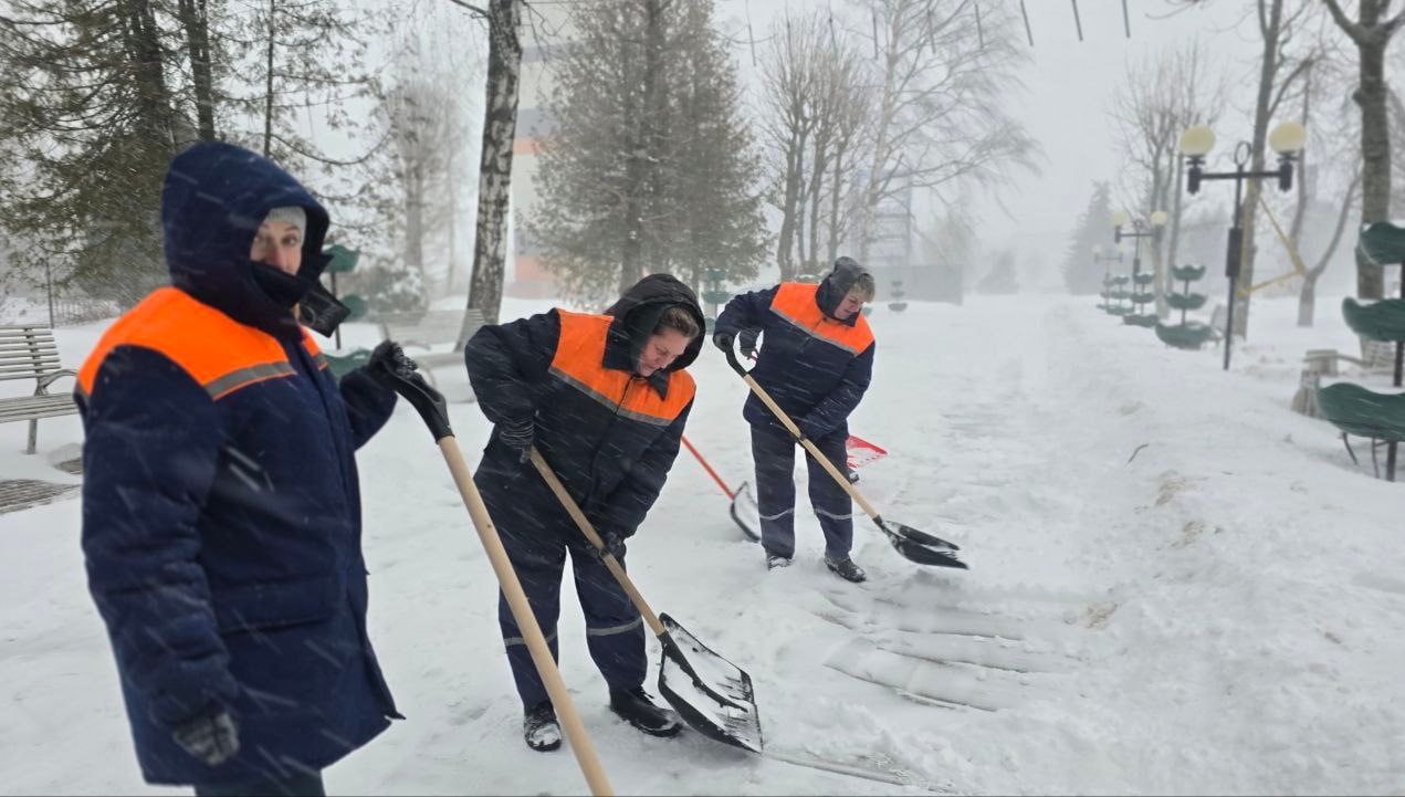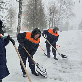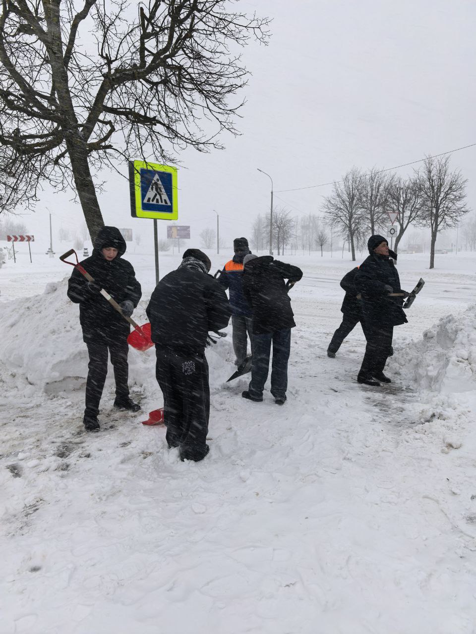 Лифтостроители дружно вооружились лопатами справляются с последствиями циклона "Улли", который обрушился на Могилевщину в ночь с 8 января.
