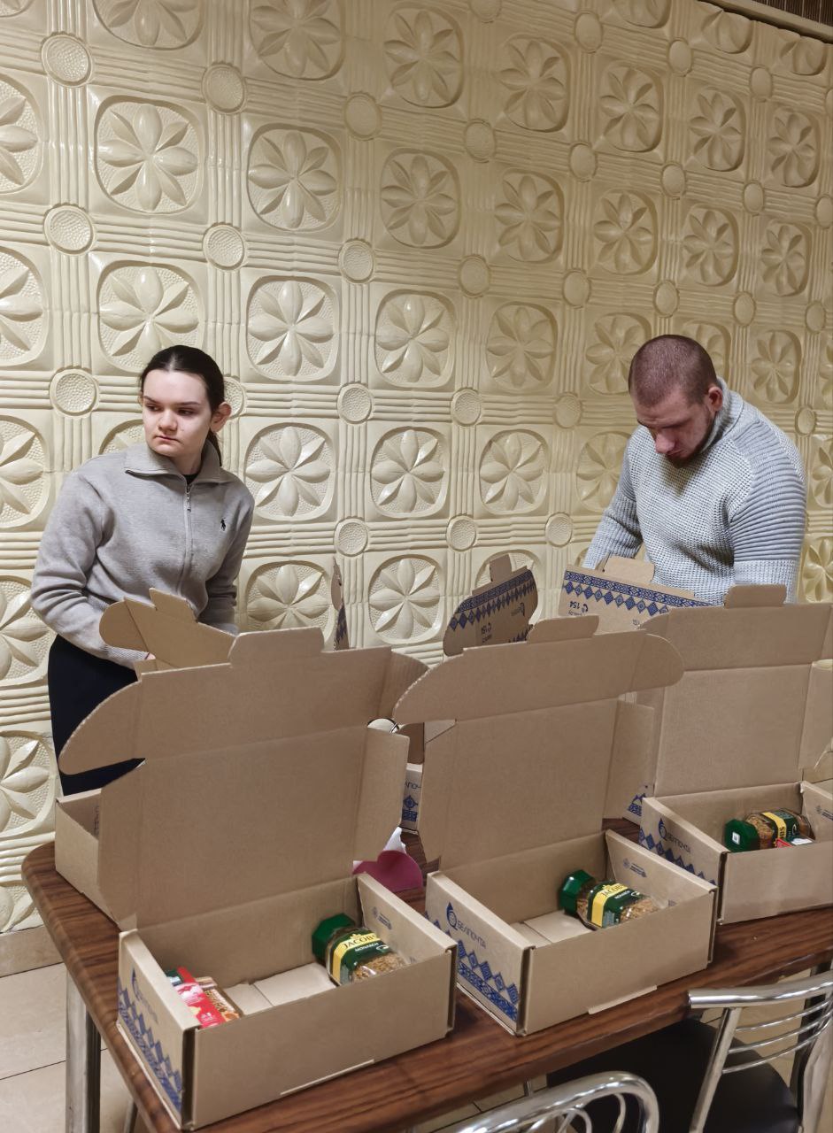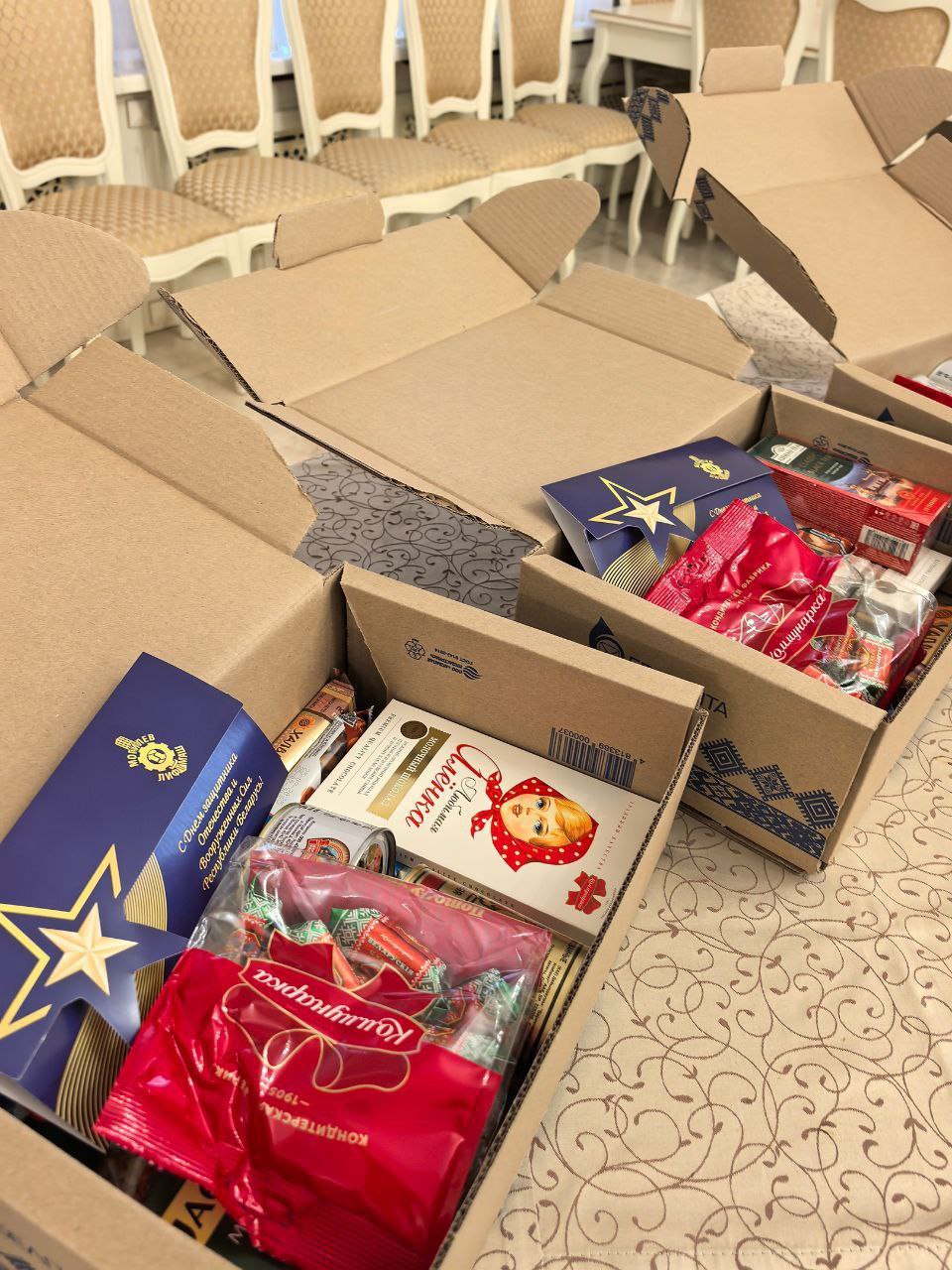 В каждую посылку ребята с частичкой своей души, вложили поздравительные открытки и продуктовые наборы.