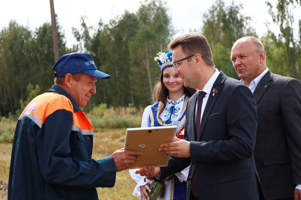 Сегодня на полях филиала СК "Дуброва" ОАО "Могилевлифтмаш" чествовали хлеборобов, которые намолотили и перевезли более 2000 тонн зерна.