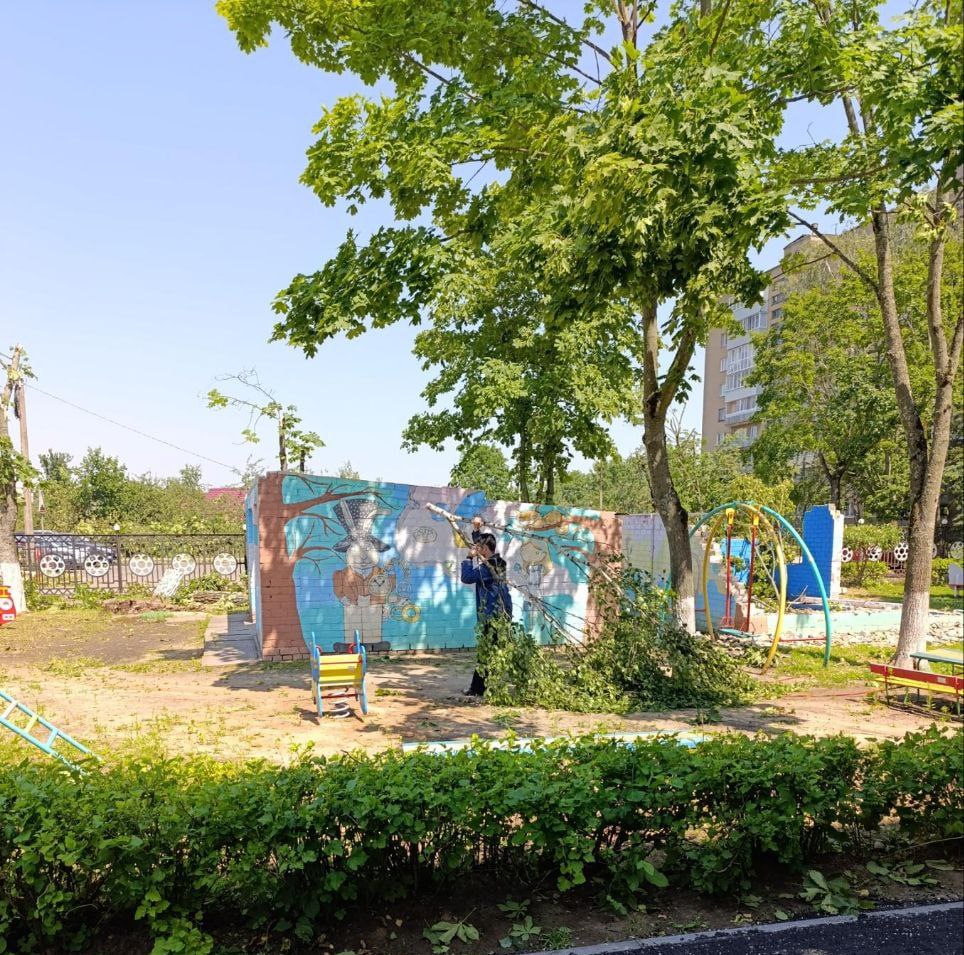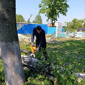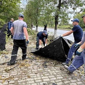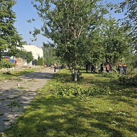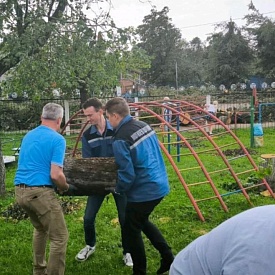 Дружная команда молодых работников предприятия выехала в подшефное учреждение образования - "Ясли сад №100 г.Могилева" - для ликвидации последствий непогоды.