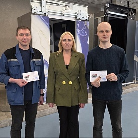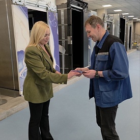 Заместитель генерального директора по идеологической работе и социальным вопросам Мария Конанкова вручила награды работникам, показавшим отличные результаты при сдаче нормативов комплекса «Готов к труду и обороне».