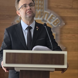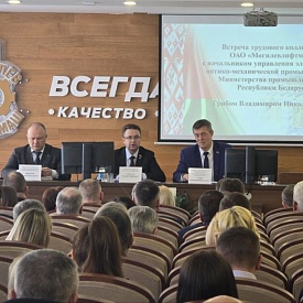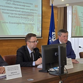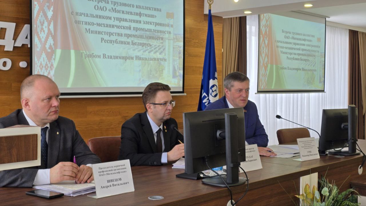 На Могилевлифтмаш состоялась информационная встреча, посвящённая теме «Обеспечение прозрачности в вопросах финансово-хозяйственной деятельности и социально-экономического прогресса предприятия» с участием Владимира Николаевича Гриба, начальника управления электронной и оптико-механической промышленности Министерства промышленности Республики Беларусь.
