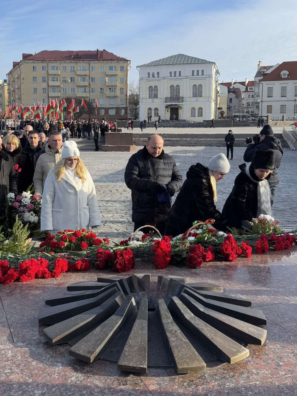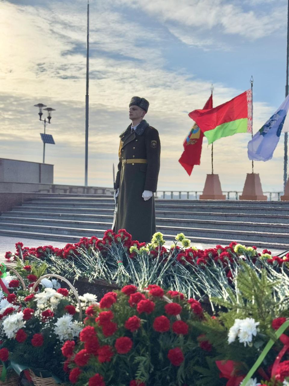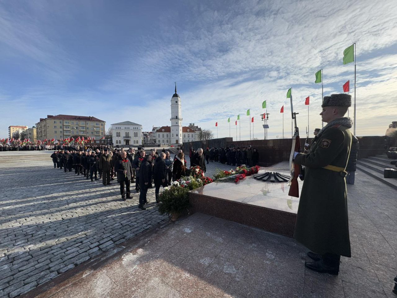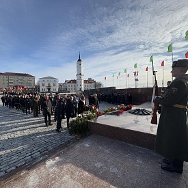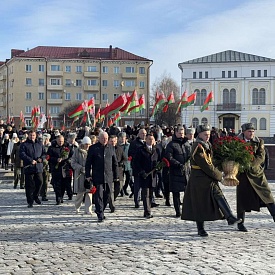Представители руководства области, депутатского корпуса, силового блока, политических партий, трудовых коллективов, молодежных и общественных объединений Могилевщины, ветераны возложили цветы и венки к Вечному огню и почтили минутой молчания память павших воинов, сложивших головы, защищая Родину.
