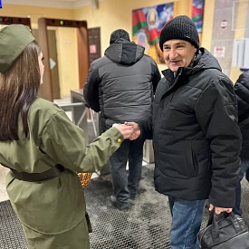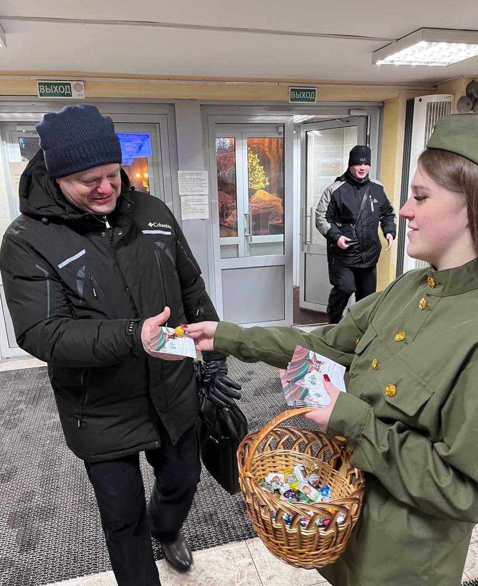 Сегодня мужчины Могилевлифтмаш с самого утра на центральных проходных заводоуправления принимали поздравления