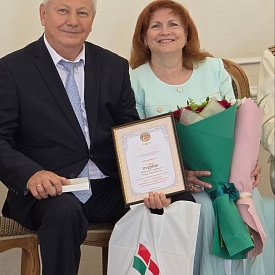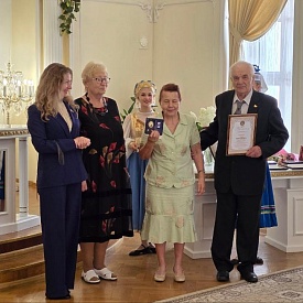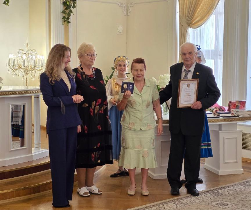 Юбилярам вручили памятные медали "За любовь и верность" за долгую историю семейного союза, крепость отношений, основанных на любви и верности, достойное воспитание детей.