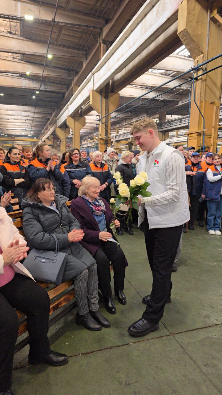 Не обошлось и без цветов: их по традиции ветеранам предприятия вручили представители молодежного крыла первички РОО "Белая Русь".