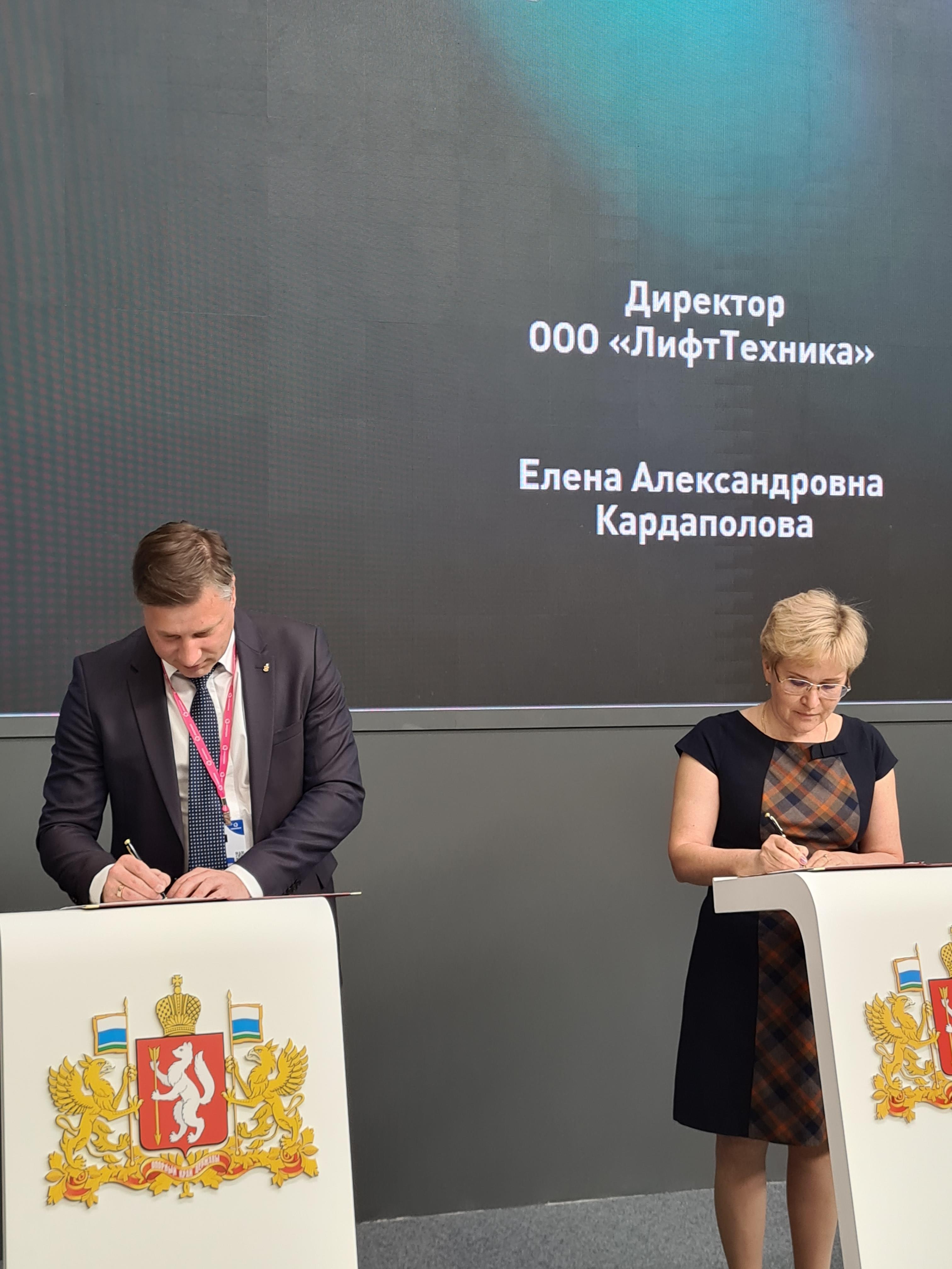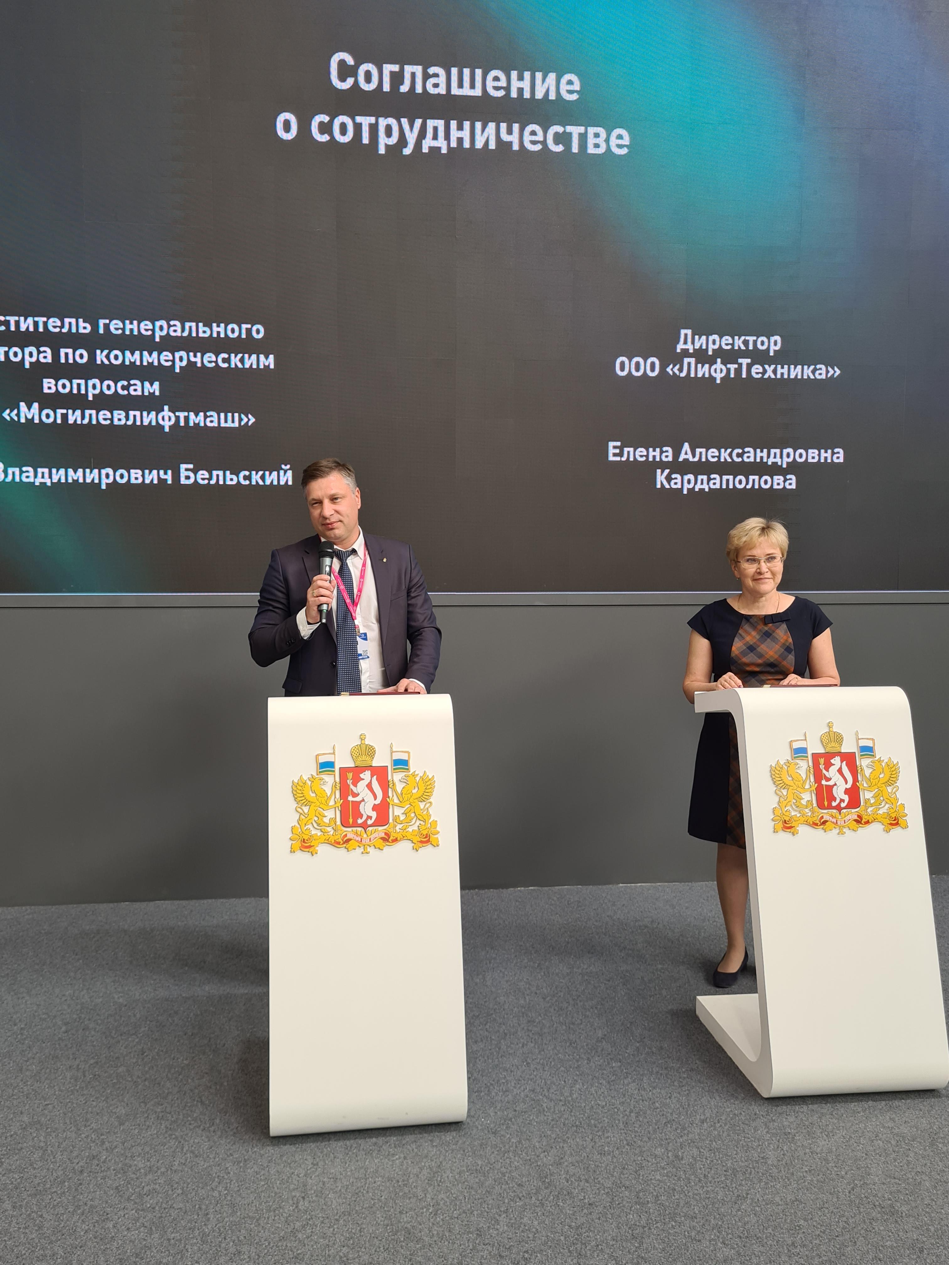 На главной индустриальной площадке России заместитель генерального директора по коммерческим вопросам ОАО «Могилевлифтмаш» Антон Владимирович Бельский подписал соглашение о сотрудничестве и годовой договор на 2022 год общую сумму 50 000 000 российских рублей на поставку лифтового оборудования с компанией ООО «ЛифтТехника».