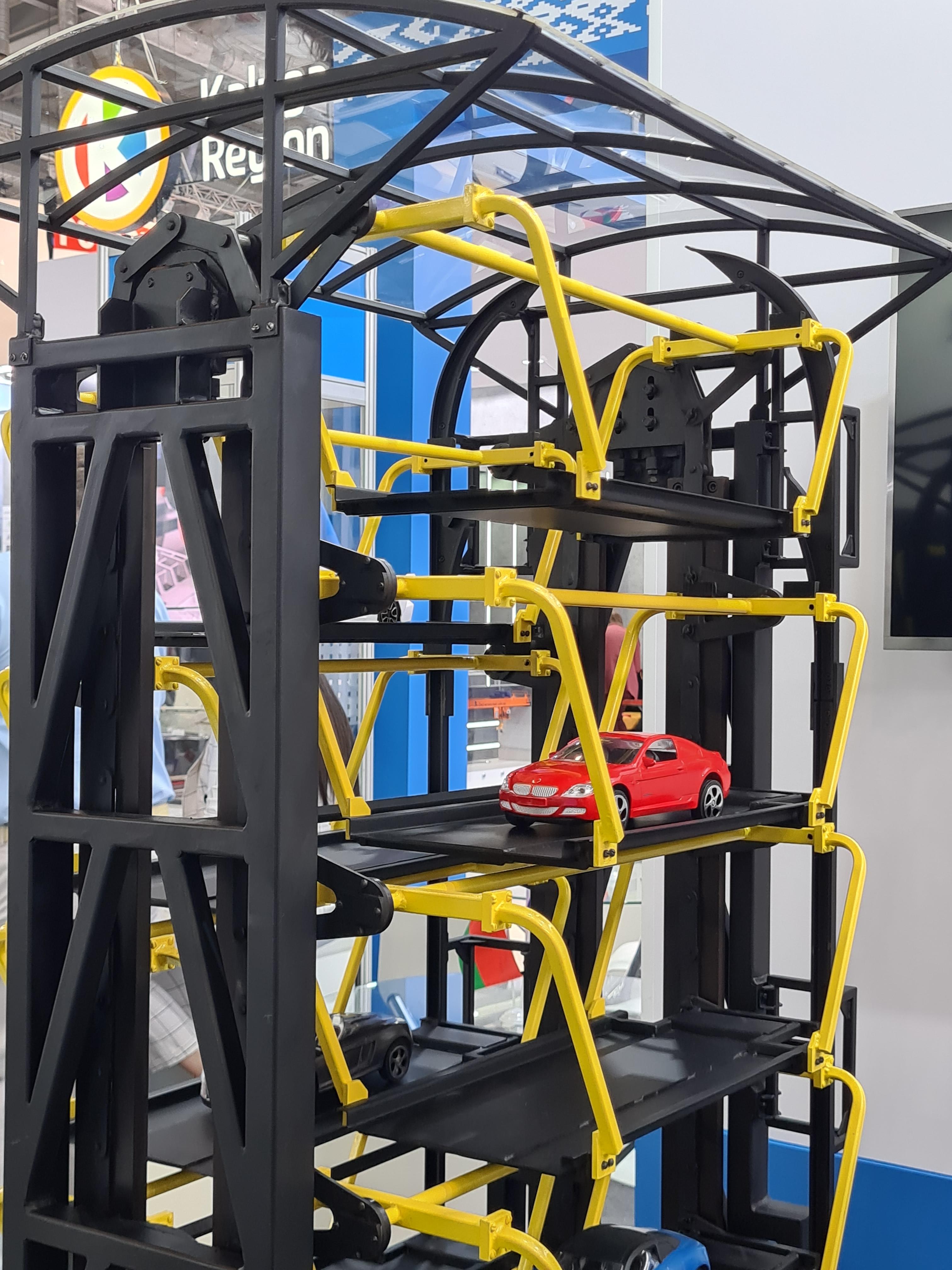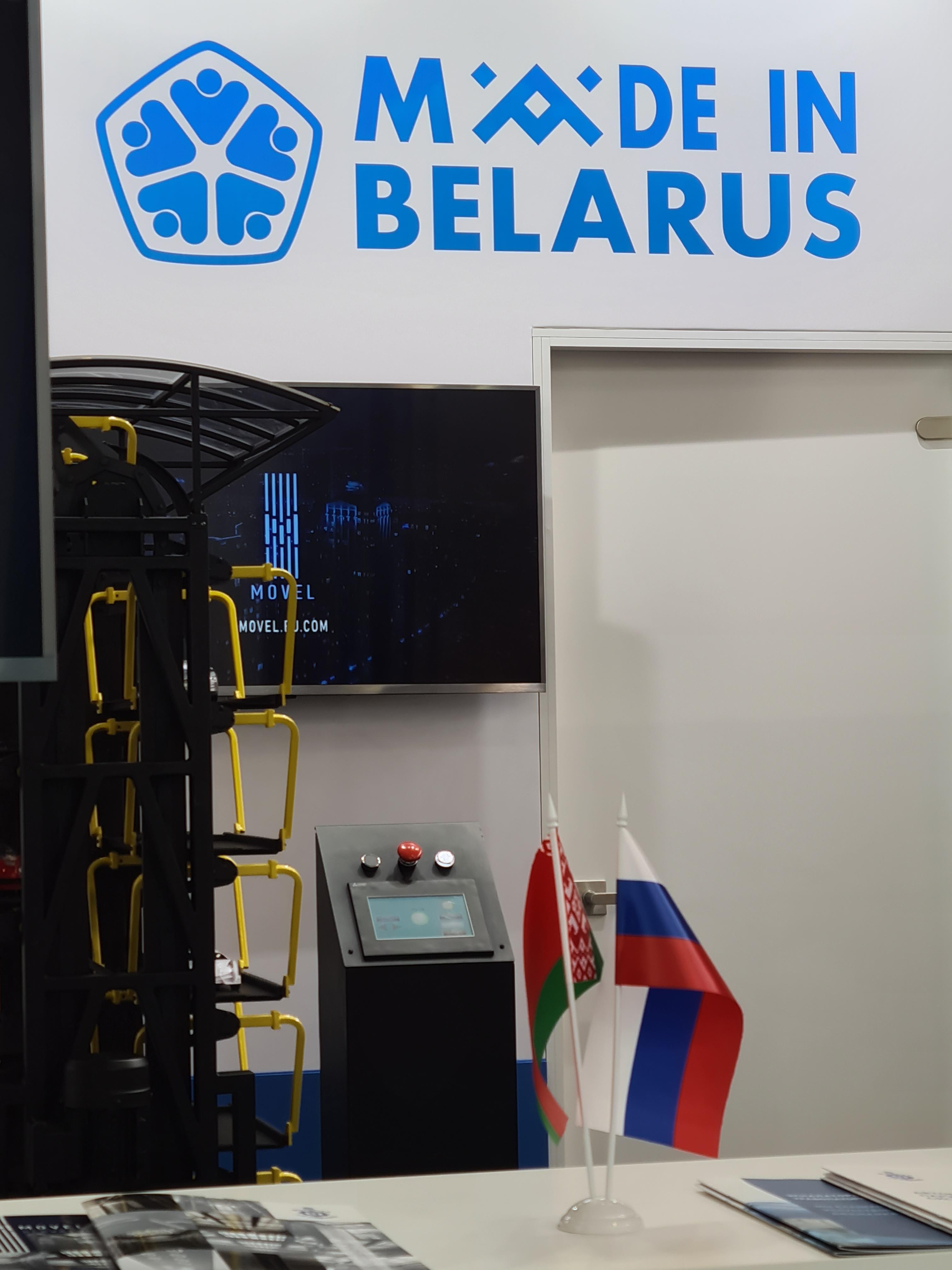На стенде ОАО «Могилевлифтмаш» была представлена кабина лифта без машинного помещения бренда Movel и макет автомобильной парковки карусельного типа.